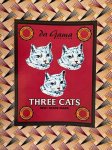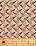 This fabric is dyed cream and printed with an intricate burgandy, mustard gold and black basket weave design. For scale, the three cats label is approximately 5 3/8" x 6 7/8".